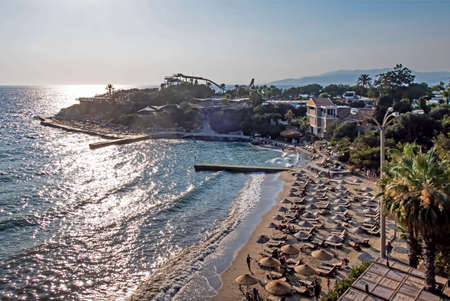 Kusadasi,Aydin,Turkey- July 25,2021.The view from Pinebay holiday village and resort in Kusadasi, in the sea and nature and summer session.