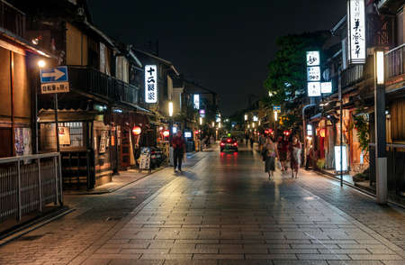 Night view of the old town in Kyoto, Japan. Long exposure.