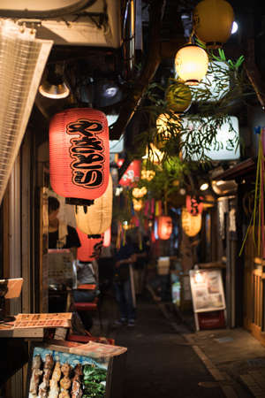 TOKYO, JAPAN - APR 14, 2019 : Restaurant Bar street shop sign Japan Izakaya Night life