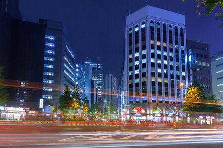 Tokyo, Japan - January 08, 2020: Tourists and Local People walking on the Beautiful Tokyo street among passing Cars in the Night time