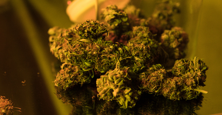 Marijuana buds in macro. Legal medical cannabis, smoking weed activities, ganja