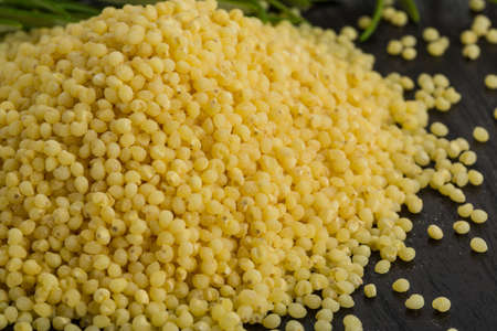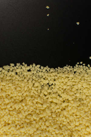 Dry yellow couscous. Texture.