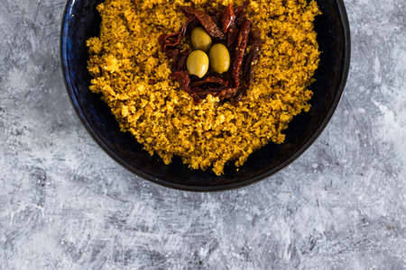 Arabic traditional cuisine - Couscous with tomato and green onion