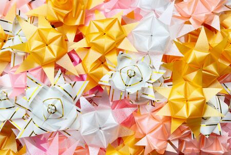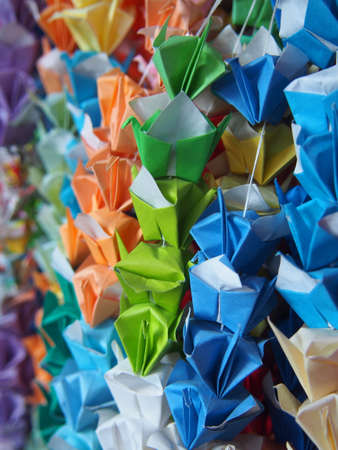 Colorful origami paper folding as a wishing paper in Japanese temple and culture
