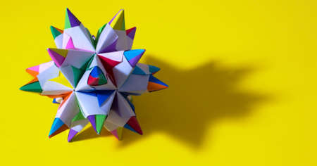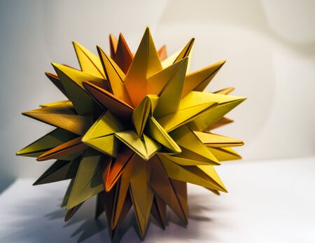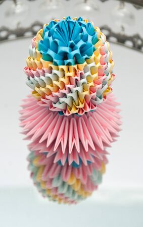 Colorfull origami kusudama on bright paper background
