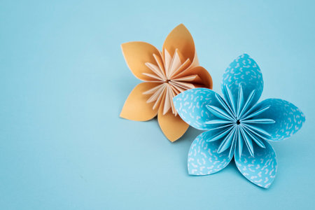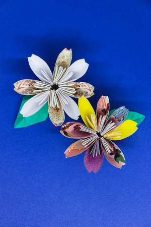 Flower origami with blue background