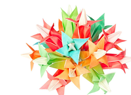 Colourful origami flower ball isolated on a white background