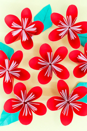 module origami paper flowers craft isolated on white background