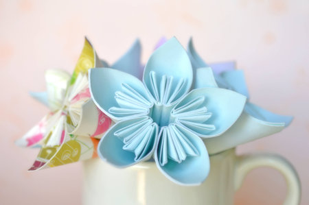 Origami flower, detail of a flower handmade paper made ??object command, oriental tradition