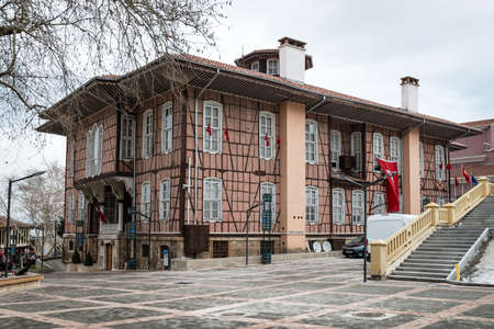 Bursa, Turkey - February 04, 2017: Exterior view of the historic building of municipality in Bursa. The house was built in 1879.