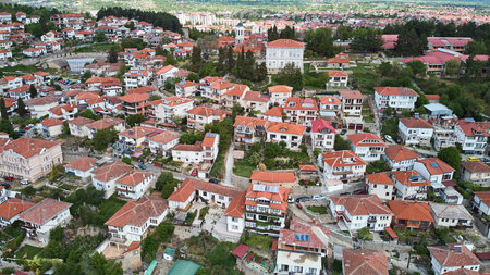 Aerial view of Ohrid city. Lake Ohrid. North Macedonia