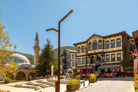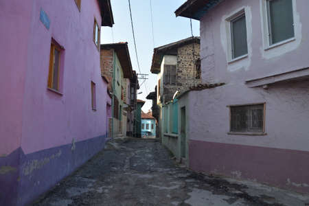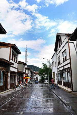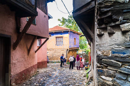 BURSA, TURKEY - SEPTEMBER 01, 2018 : 700 years old Ottoman village Cumalikizik. It is popular with small tiny wooden and traditional houses and shops around cobblestone streets.