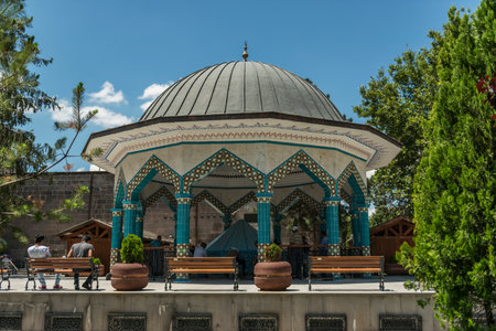 ESKISEHIR, TURKEY - JUNE 14, 2018 : Historic tomb called Seyit Gazi which islamic ottoman social complex building in Seyitgazi, Eskisehir in Turkey.