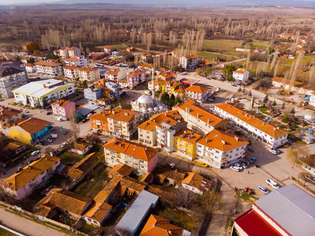 View from drone of Cavdarhisar townscape, Kutahya Province, Turkey