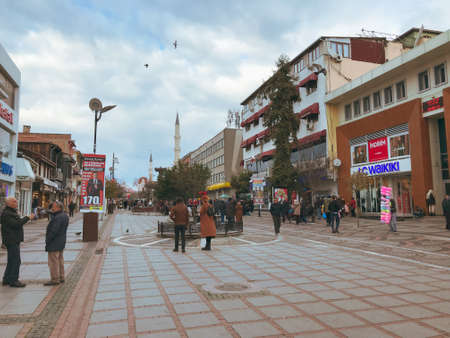 EDIRNE, TURKEY - JULY 28, 2019: Shopping pedestrian street in the center of city of Edirne, East Thrace, Turkey