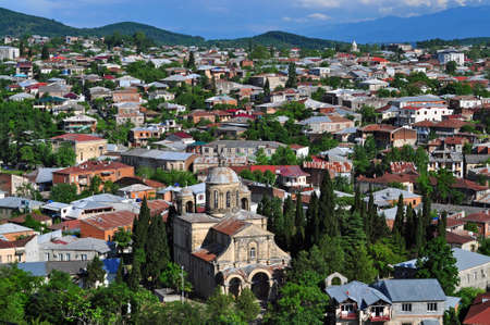 View of the city of Kutaisi in Georgia with Khareba Church Ahead