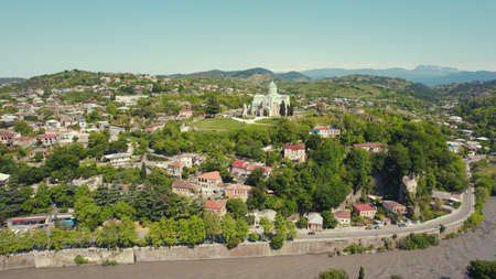 Aerial view of Cathedral of Dormition, temple of Georgian Orthodox Church in Kutaisi, Georgia