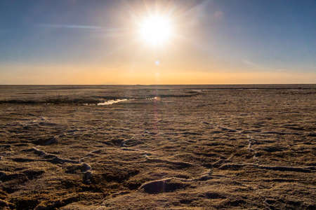Sunrise in the desert salt, given the rising sun from white rock salt reflection