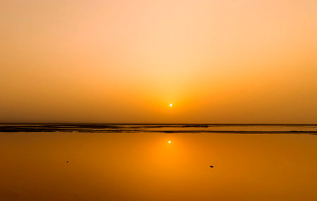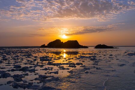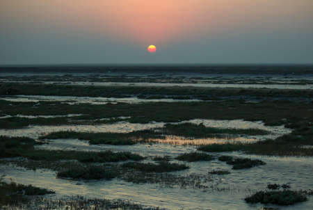 Sunset on a dried beach in Khambhat located in Gujarat state of India