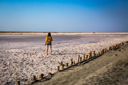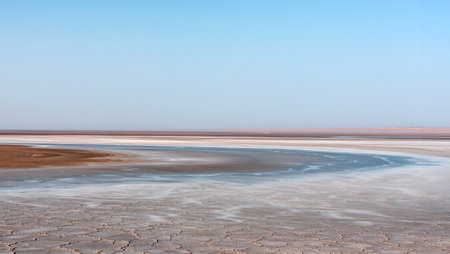 Exotic lake Elton in summer Sunny day. Volgograd region, Russian Federation.