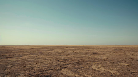 A vast, barren landscape featuring cracked earth under a clear blue sky. This image captures the stark beauty of arid environments and the effects of drought. ai generated.