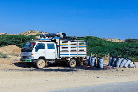 DHANUSHKODI, INDIA - OCT 05,2013-Unidentified tourists travel by a hired van in Dhanushkodi, Tamil Nadu, India. Dhanushkodi is a major Hindu pilgrimage site in India.