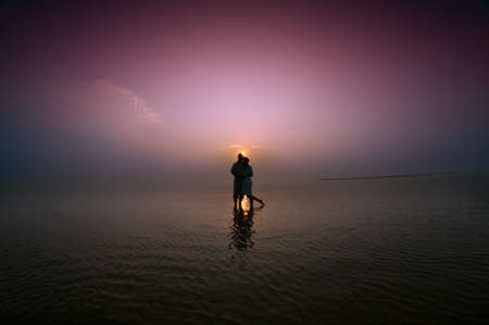 Sunset at Beach.silhouette people