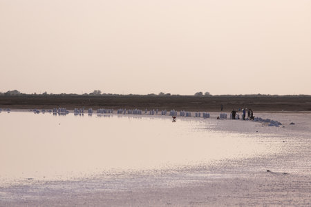 Extraction of salt on a salt lake. Neftchala. Azerbaijan.