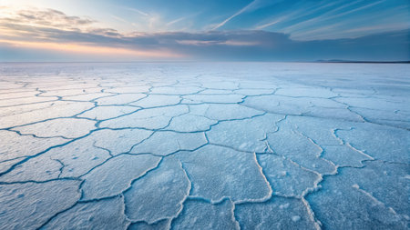 Glacier landscapes plateau sunrise cracked salt flat horizon serene expanse