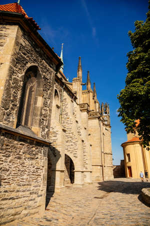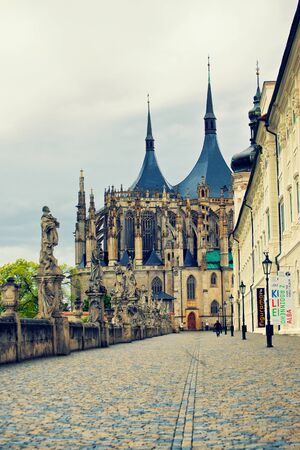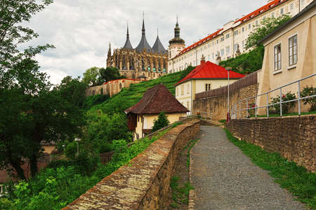 Czech Republic, Kutna Hora- September, 24, 2017.A pedestrian path along the Jesuit College and St. Barbara's temple in Kutna Hora, in the Czech Republic