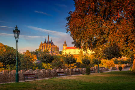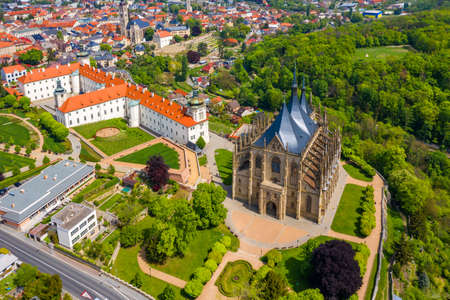 View of Kutna Hora with Saint Barbara's Church that is a heritage site, Czech Republic. Historic center of Kutna Hora, Czech Republic, Europe.