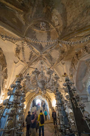Kutna Hora, Czechia - Sep 27, 2019: Sedlec Ossuary Interior - Kutna Hora, Czech Republic