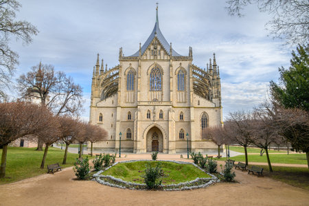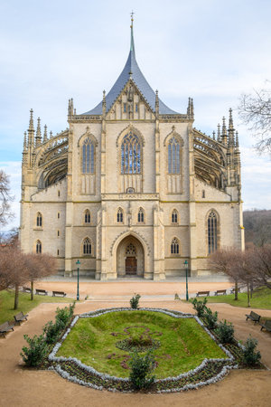Front view of the Roman Catholic Church of Saint Barbara in Kutna Hora town in the Central Bohemian Region of the Czech Republic on 26 January 2025