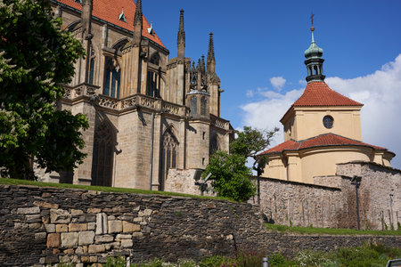 Saint Barbara church and rebuild medieval castle wall with tower in Kutna Hora