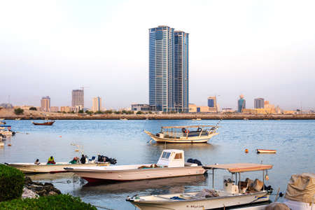 Fishing boats and skyscrapers in Ras Al Khaimah, UAE