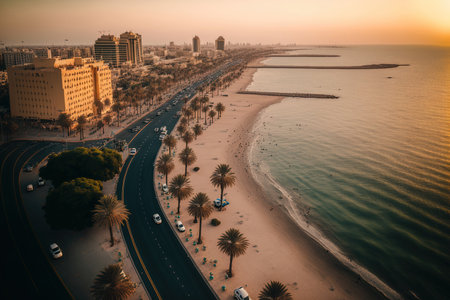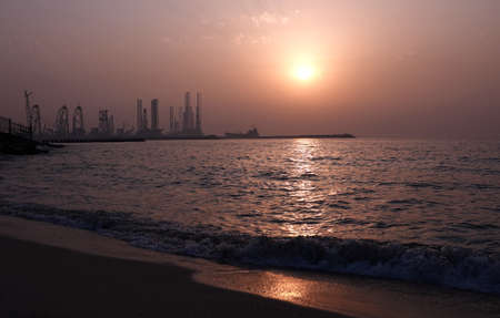 Beautiful landscape of Shuwaikh beach in city of Kuwait during while people are enjoying outside