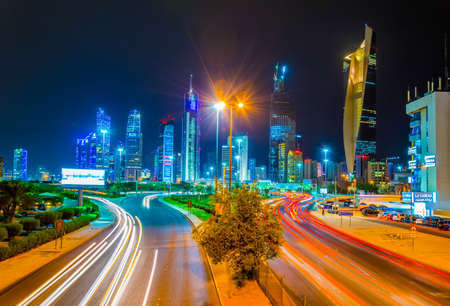 KUWAIT CITY, KUWAIT, NOVEMBER 5, 2016: View of traffic on a busy street in the central Kuwait during night.