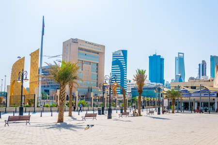 KUWAIT CITY, KUWAIT, NOVEMBER 4, 2016: View of aa golden monument with a small park in the central Kuwait.