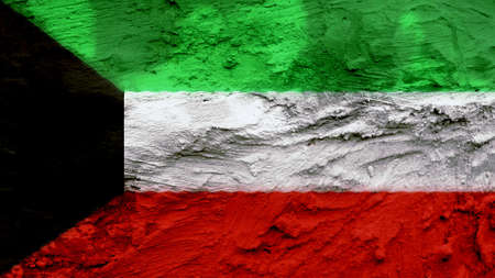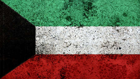 National flag of Kuwait depicting in paint colors on an old brick wall. Flag banner on brick wall background.