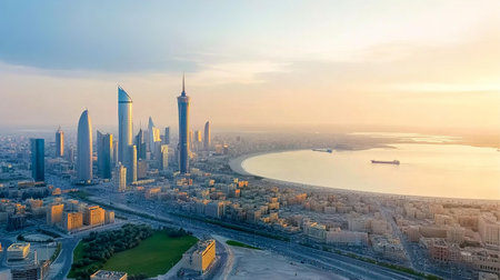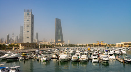 Kuwait May 18 2024: View of Kuwait city from Souq Sharq Marina