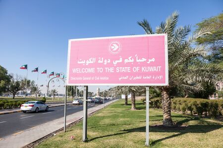 Welcome to Kuwait sign outside of the Kuwait International Airport. December 12, 2014 in Kuwait City, Middle East