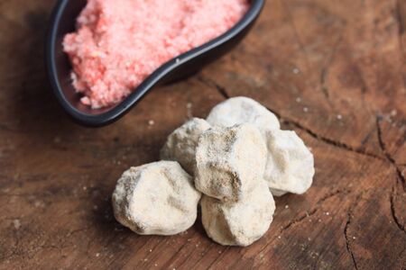 Close up of rock salt traditional salt making of Nan province,Thailand. Selective focus.