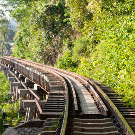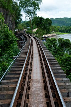 Railway on a Bridge over the River Kwai, Kanchanaburi, Thailand.