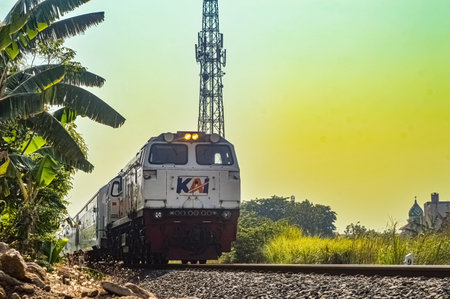 a series of fast-moving executive class trains pulled by a cc206 locomotive made by General Elektrik belonging to PT Kereta Api Indonesia, Indonesia, 28 October 2023.
