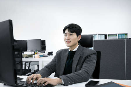 business concept asian korean old and young two men, different generations male man boss and employee concept, working