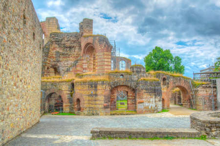 TRIER, GERMANY, AUGUST 14, 2018: People strolling through ruins of Kaiserthermen in Trier, Germany