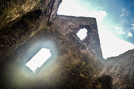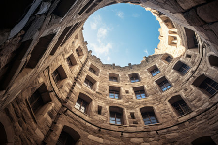 Ascending to the Sky: A Glimpse of the Round Tower in a Medieval Castle