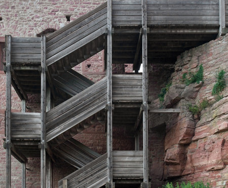 weathered wooden stairway at Wertheim Castle (Southern Germany)