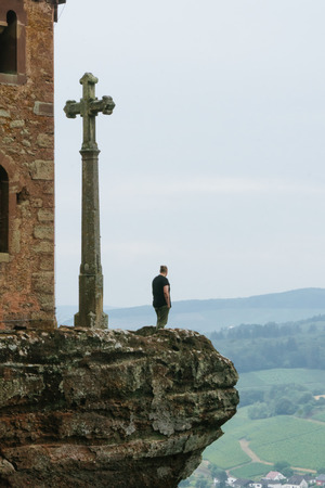 Man near old church on the rock Germany