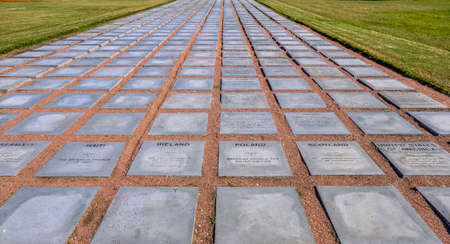 Yper, Belgium - August 7, 2021. Detail of the war monuments at Langemark cemetery. Langemark is the most famous German first world war cemetery in Belgium.